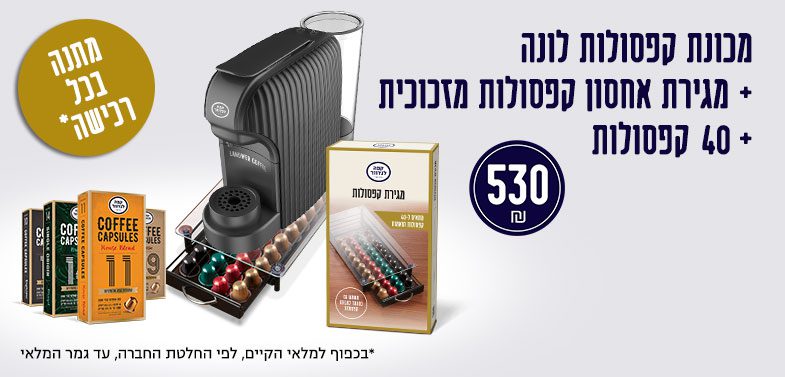 מכונת Luna קפסולות + 30 קפסולות לנדוור + זוג כוסות 150 מ"ל