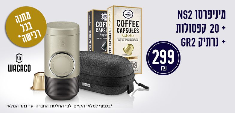 מבצע מיוחד – סט מושלם לבית. מכונת הקפסולות שלנו + 30 קפסולות מתנה לבחירה וזוג כוסות 150 מ"ל LIS דופן כפולה.